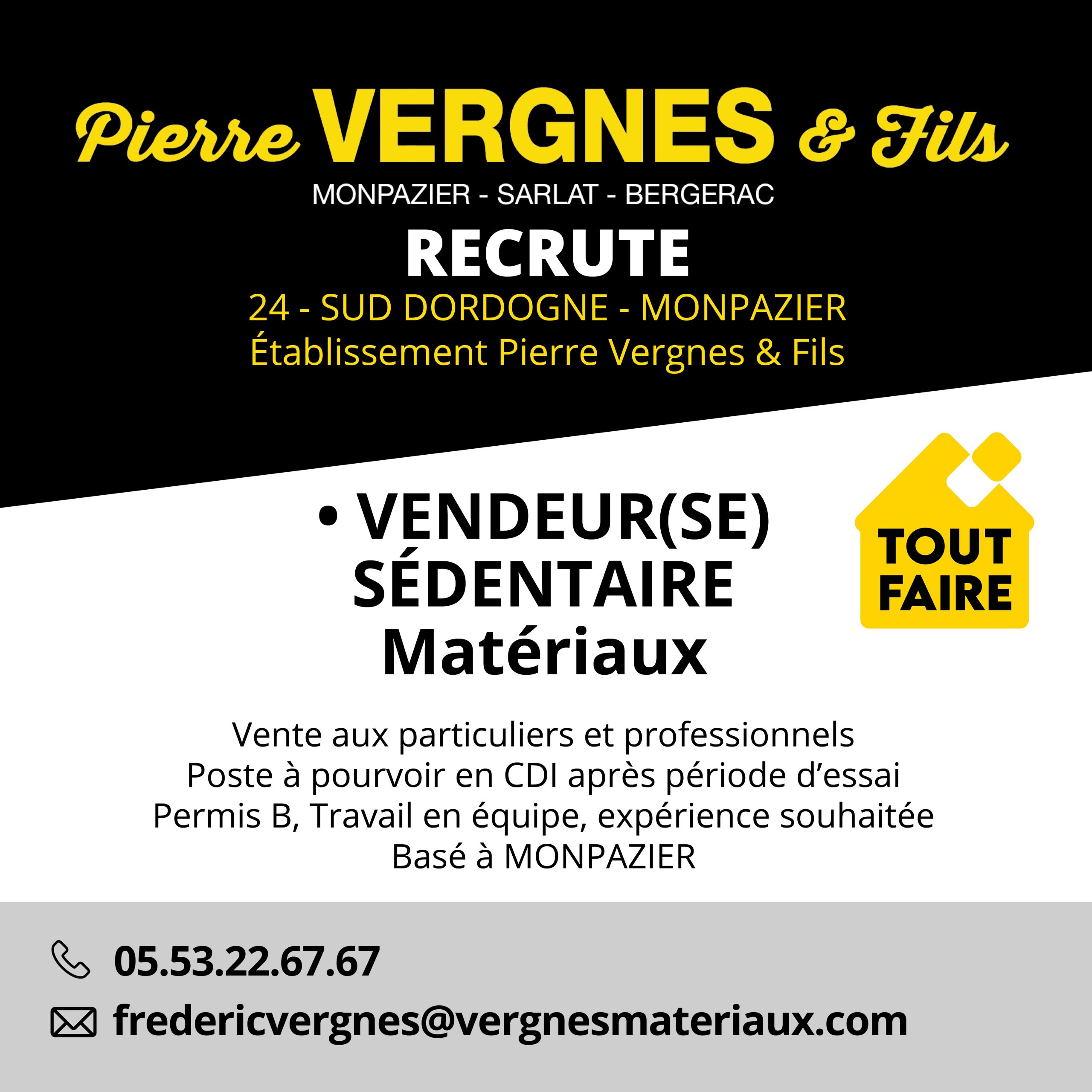 Les Établissements Vergnes cherchent un vendeur(se) et un alternant(e).